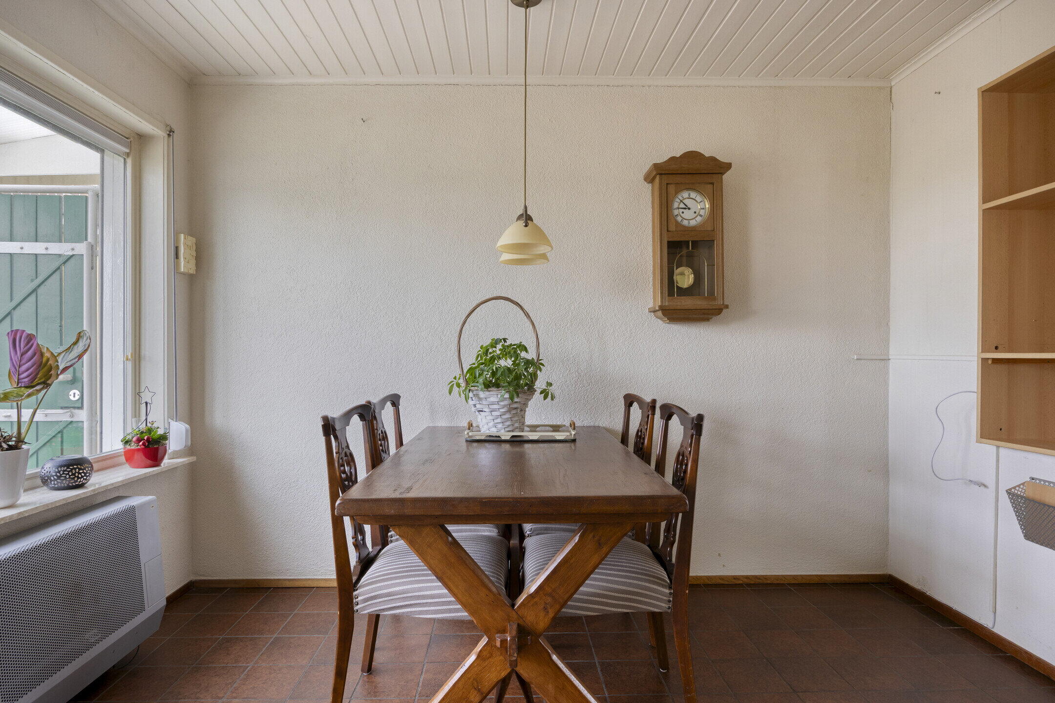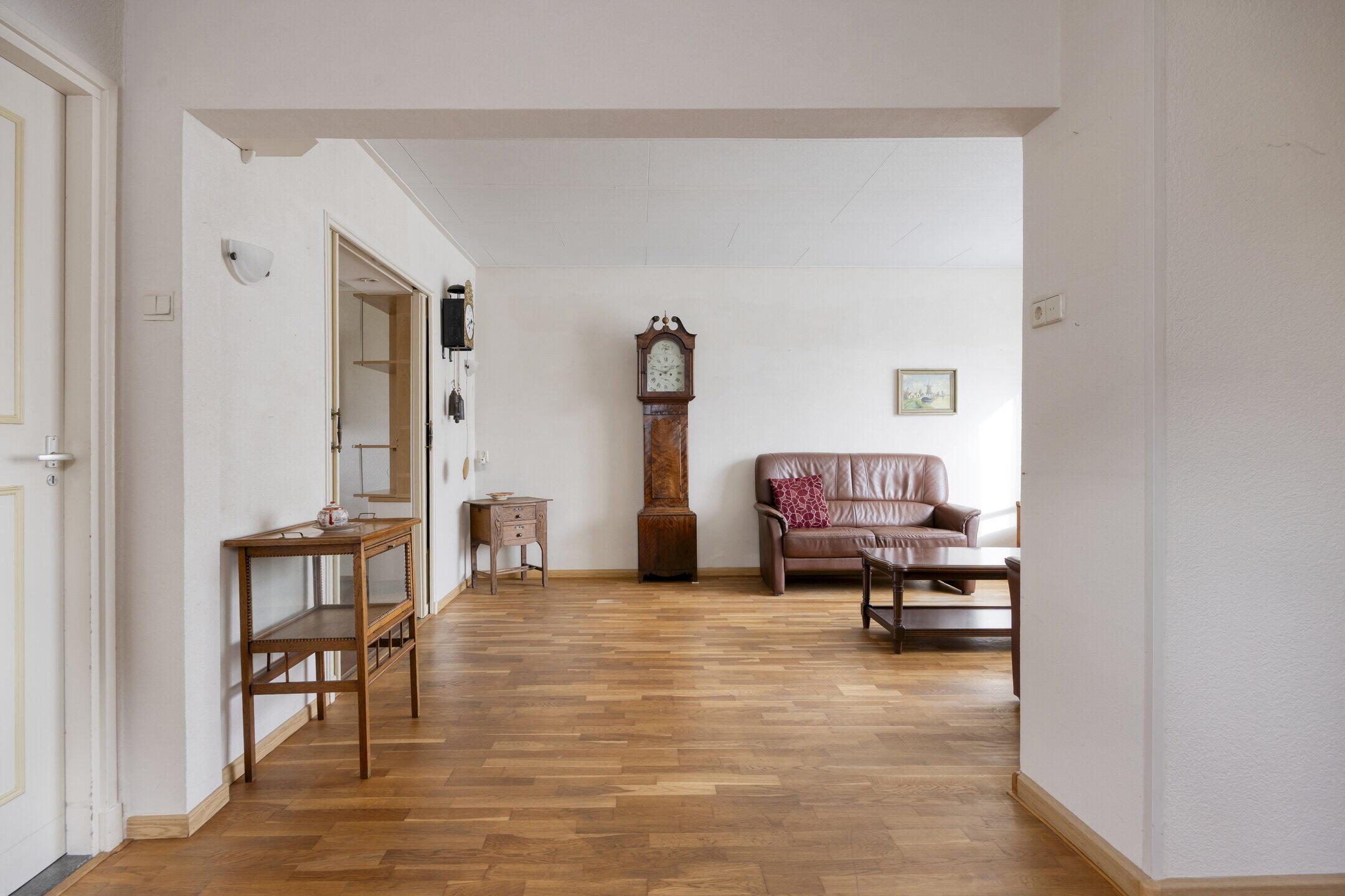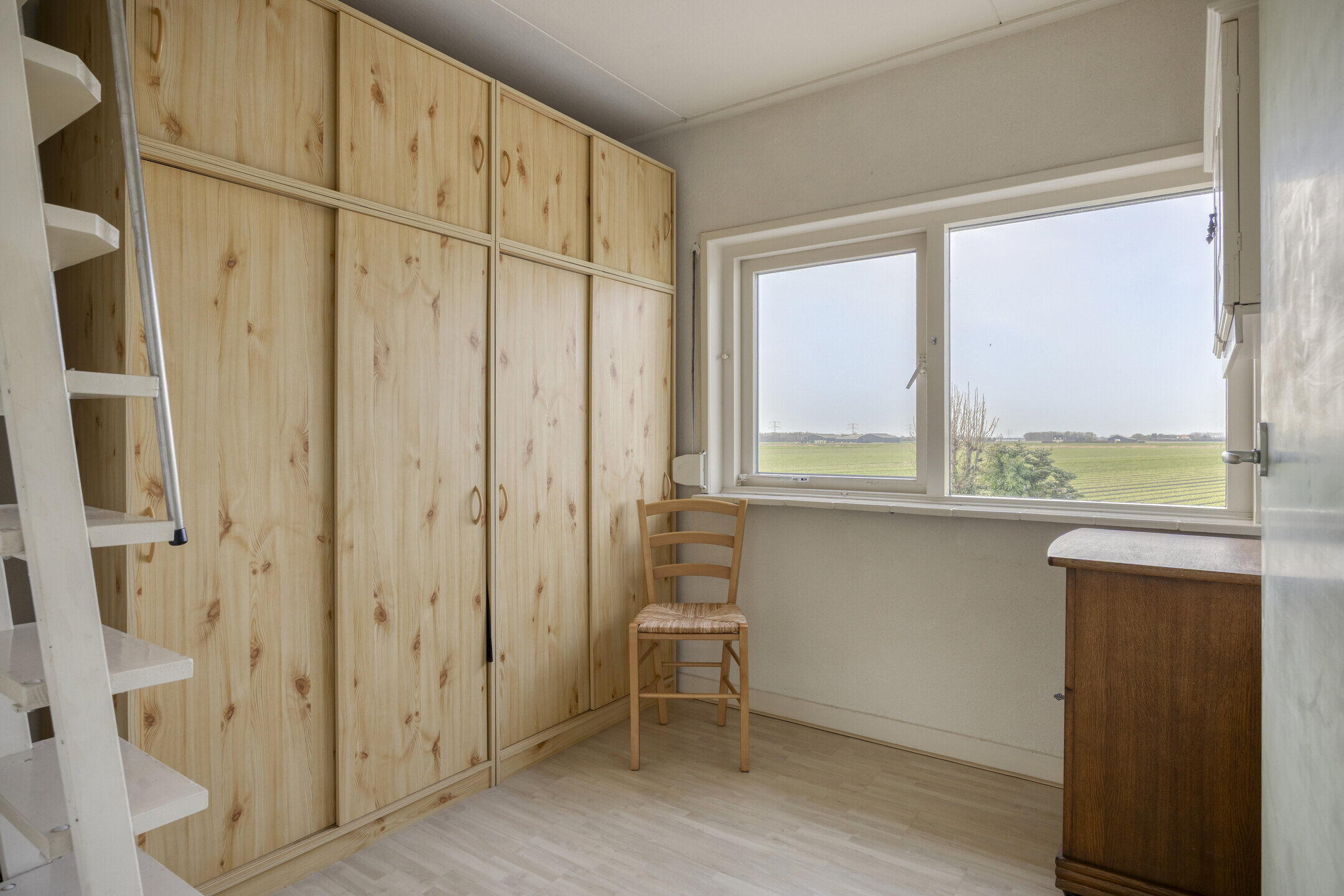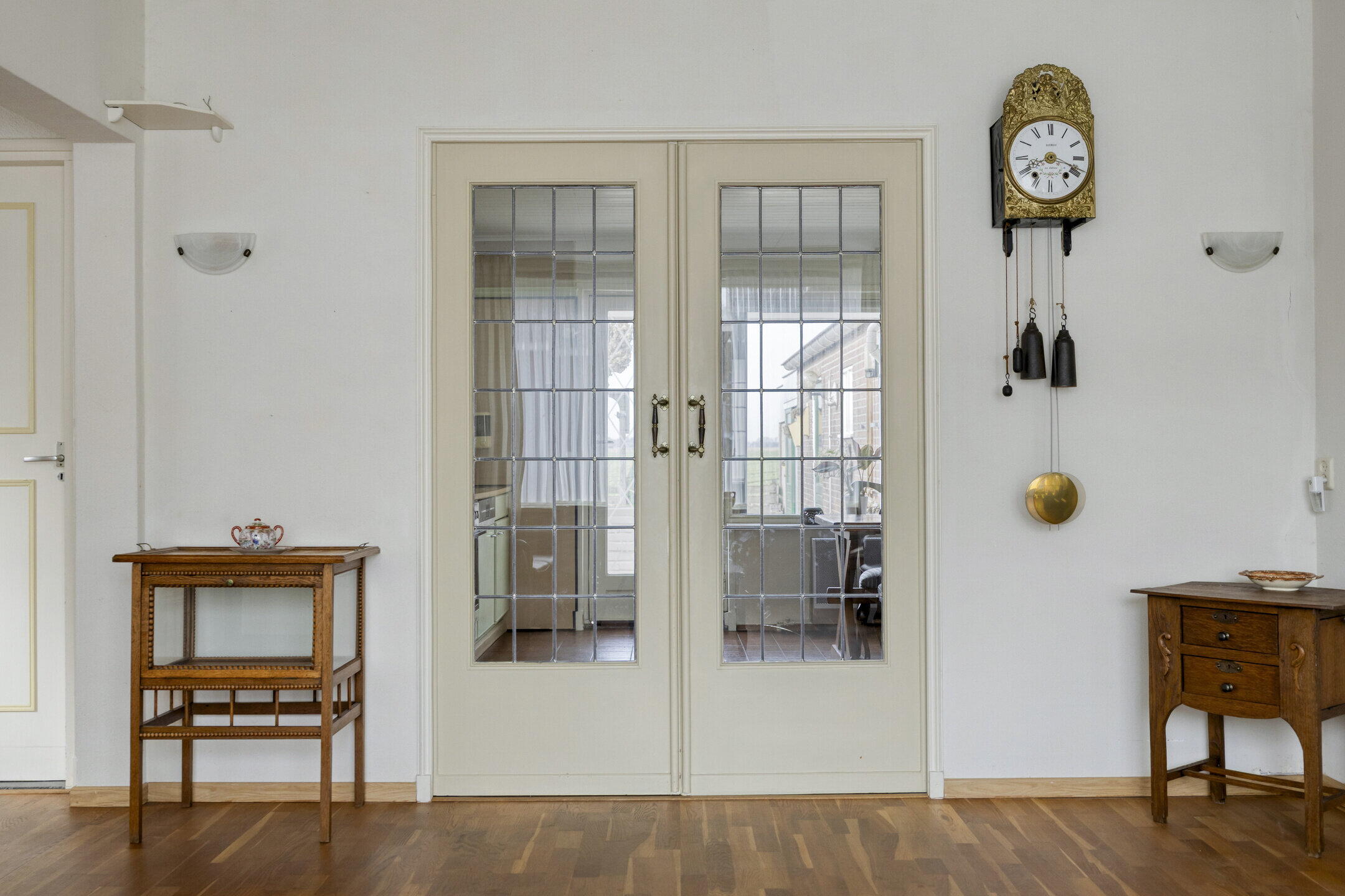 Bij binnenkomst valt direct op hoeveel ruimte de woning biedt. Links bevindt zich een handige provisieruimte voor extra opslag. De woonkamer is royaal en biedt volop mogelijkheden voor het creëren van een gezellige zithoek. Dankzij de grote ramen met glas-in-looddetails komt er veel natuurlijk licht binnen en krijgt de ruimte een sfeervolle en karaktervolle uitstraling. Via schuifdeuren bereik je de ruime keuken. Dit is een fijne plek waar je nog alle kanten mee op kunt. De keuken is netjes en ruim genoeg om hier ook een grote eettafel te plaatsen, zodat je hier heerlijk kunt dineren met familie en vrienden. Aansluitend vind je een kleine serre, wat zorgt voor extra licht en een fijne overgang naar buiten. Naast de keuken bevindt zich een praktische bijkeuken, ideaal voor het opbergen van spullen. Vanuit hier bereik je ook een gang met een separaat toilet.