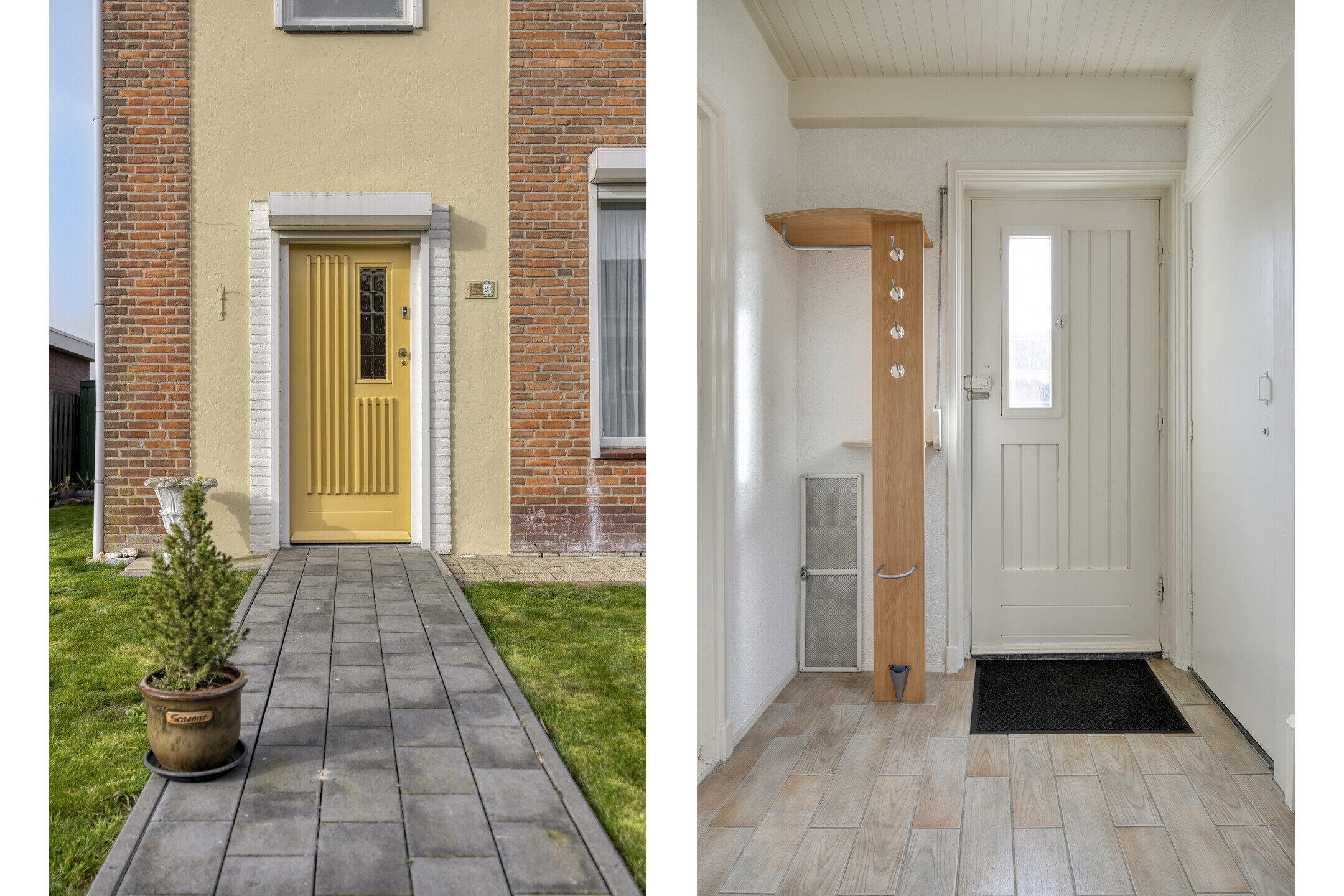 Via de strak aangelegde voortuin bereik je de entree van de woning. Binnenkomst is in de hal, waar zich ook de vaste trap naar de eerste verdieping bevindt. Vanuit de hal loop je door naar de leefruimtes op de begane grond.