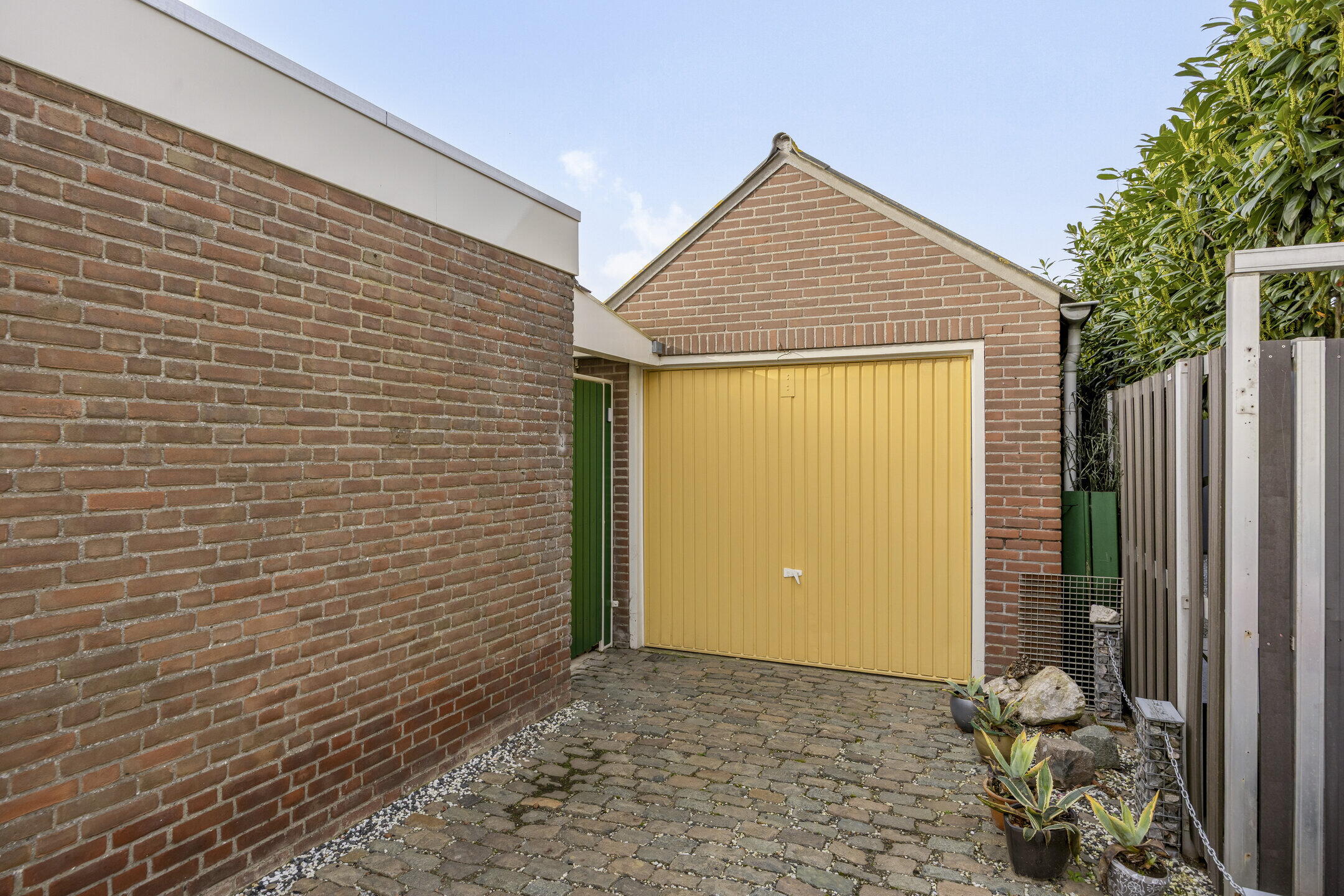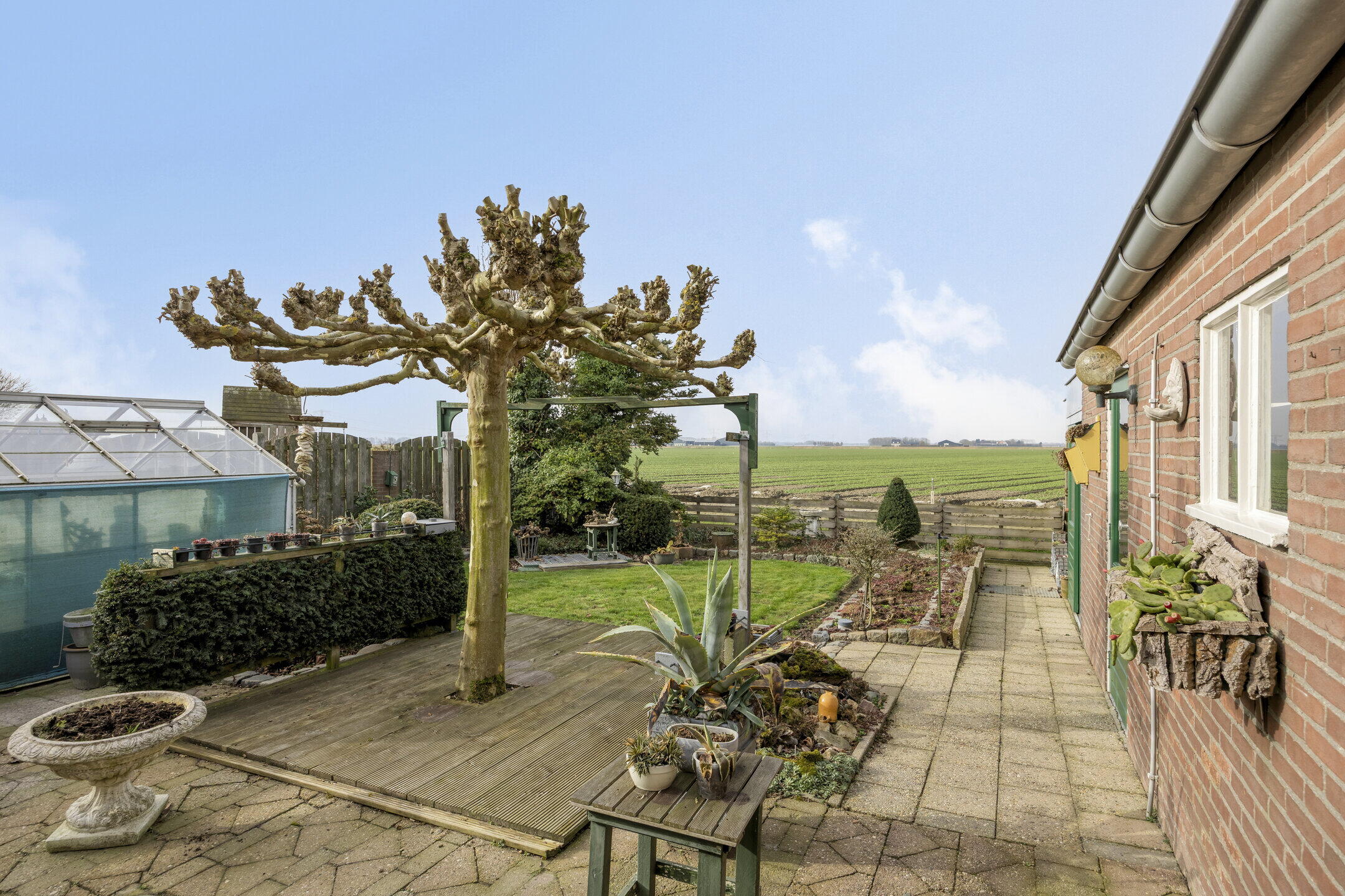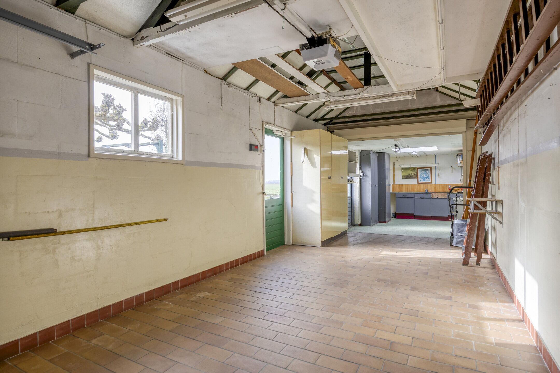 De achtertuin is een echte verrassing. Deze is zeer ruim en biedt tal van mogelijkheden voor tuinliefhebbers, hobbyisten of gezinnen die graag buiten zijn. Je kijkt uit over de uitgestrekte weilanden, waardoor je hier geniet van rust, privacy en een prachtig vrij uitzicht. De tuin is deels bestraat en deels voorzien van gras en beplanting, wat zorgt voor een fijne balans tussen onderhoudsgemak en groen. Daarnaast beschikt de tuin over een eigen kas en twee bergingen. Aan de woning bevindt zich bovendien een grote garage met aangrenzende berging. Deze ruimte is perfect te gebruiken als opslag, hobbyruimte of zelfs als werkplaats aan huis.